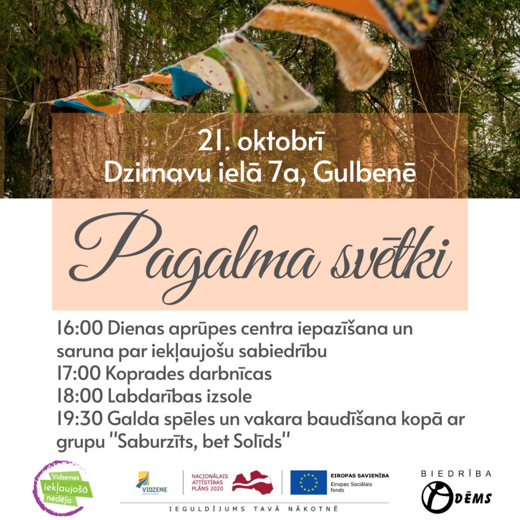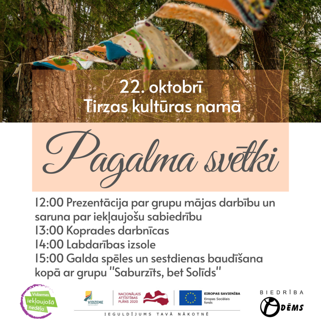 No 26.septembra līdz 1.oktobrim notika “Vidzemes iekļaujošā nedēļa”. Šajā sakarā Gulbenes biedrība “Dēms” aicināja uz Pagalma svētkiem Gulbenē un Tirzā, bet iesaistīto personu slimības dēļ pasākumi tika pārcelti. Pagalma svētki notiks 21.oktobrī Gulbenē un 22.oktobrī Tirzā.