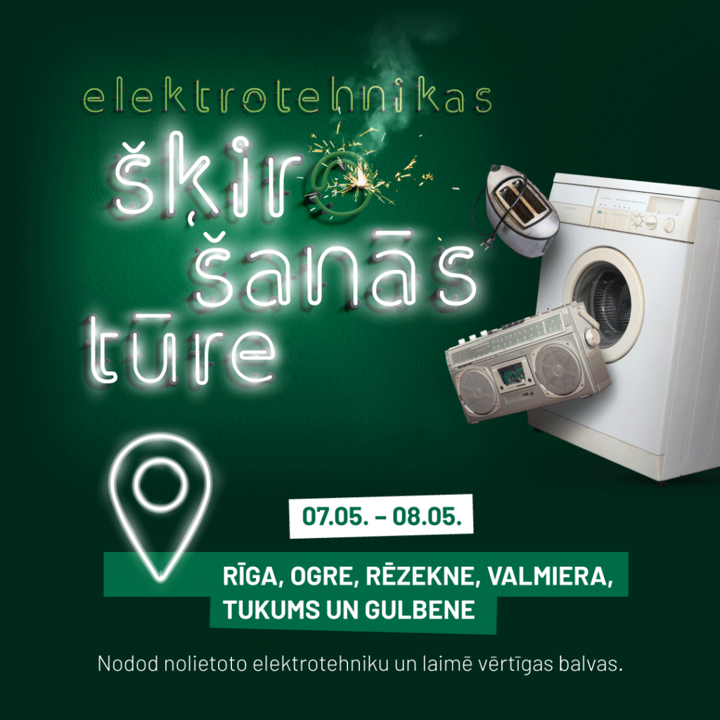 7. un 8.maijā Gulbenē pie veikala “Maxima” Skolas ielā no pulksten 10.00 līdz 16.00 būs iespēja nodot nolietoto elektrotehniku kampaņas Vislatvijas “Elektrotehnikas šķirošanās tūre” pieturpunktā.