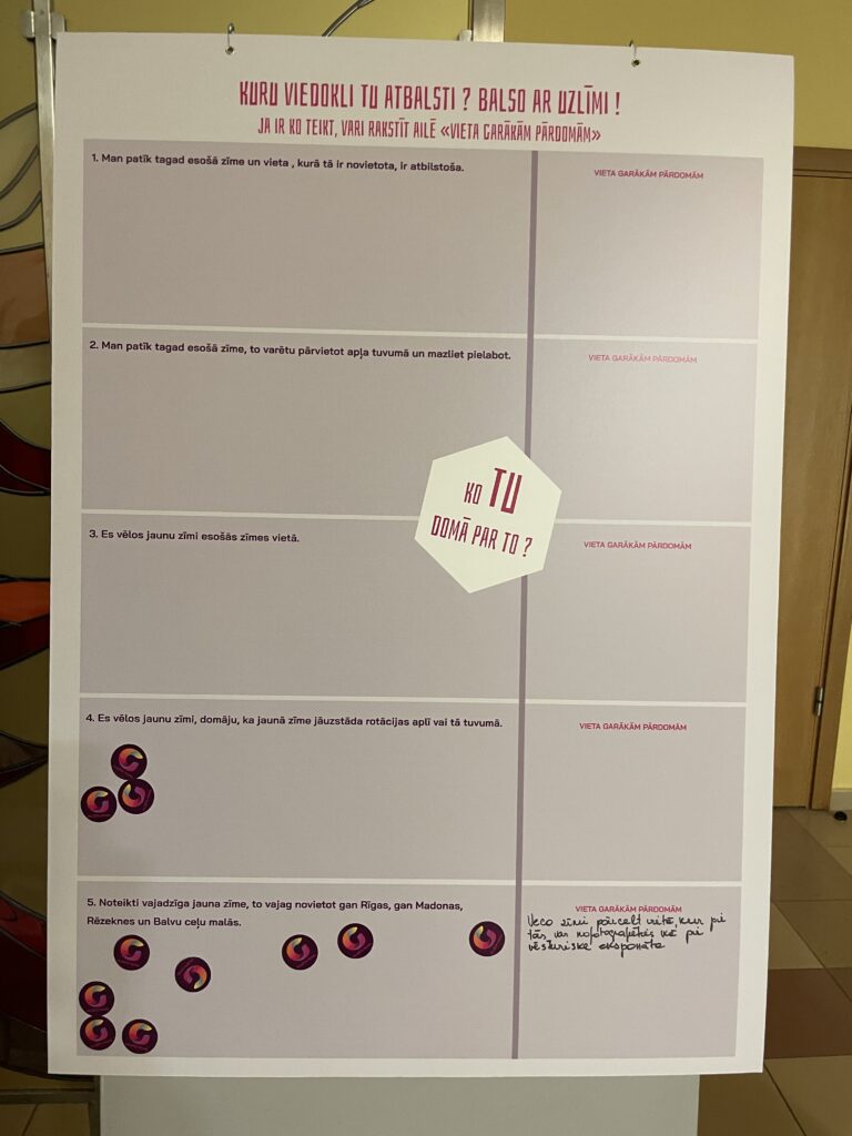 A.Birzniece aicināja gulbeniešus nākt uz kultūras centru, apskatīt izstādi, uzskates stendus, piedalīties aptaujā un pievienot savu viedokli. Veidi, kā pateikt savas domas, ir vairāki. Var ielīmēt aplīti aptaujas stendā. Var uzrakstīt savas domas uz lapiņas un iemest speciālajā urnā turpat foajē. Beigās visi viedokļi un iegūtā informācija tiks apkopota un rezultāts tiks publiskots.