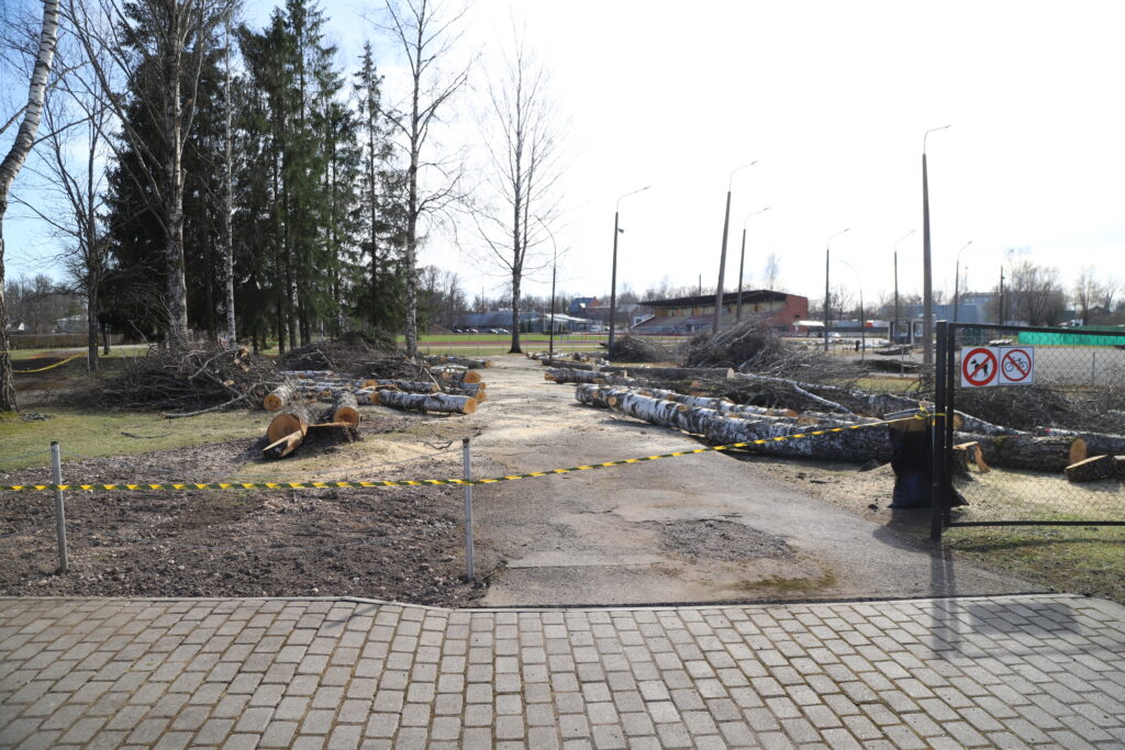 Ar šīs komisijas 27. marta sēdes lēmumu stadiona teritorijā atļauts nocirst 45 kokus – 40 bērzus, 4 priedes un vienu egli.