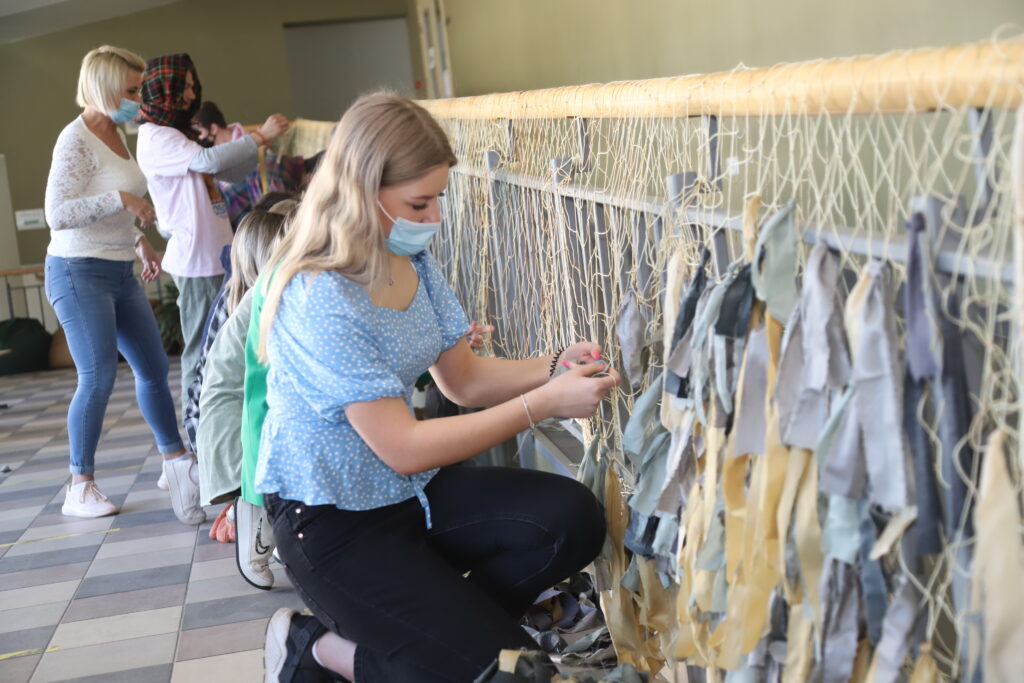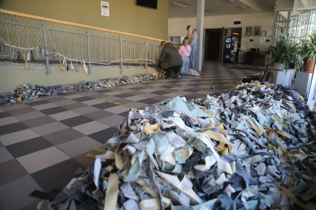 Gulbenes novada vidusskolas skolēni un skolotāji gatavo kamuflāžas tīklus Ukrainas karavīriem