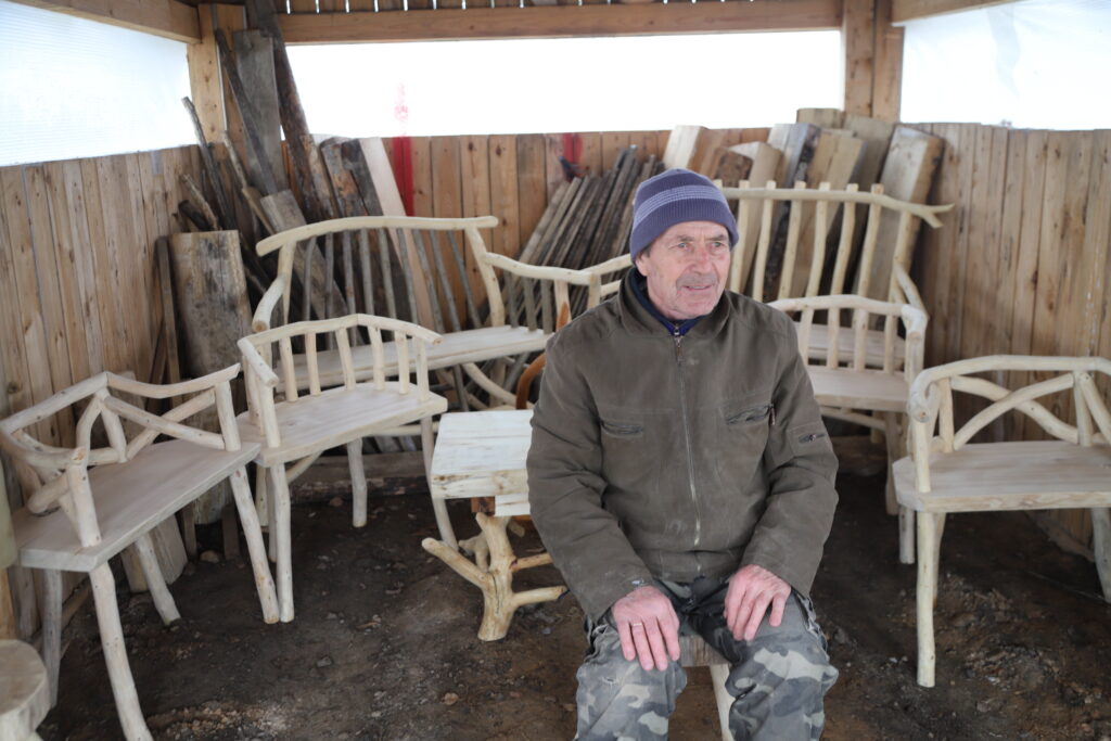 Pēteris labprāt “Dzirkstelei” parāda, ko paveicis garās ziemas laikā. Joprojām priede un osis ir tie koki, ar ko vislabprātāk strādā Pēteris. Tāpat arī ozols. Dažas mēbeles jau ir pārdotas. Viņš priecājas, ja citi viņa darinātās mēbeles atzīst par vērtīgu roku darbu. Viņa mēbeles bieži aizceļo uz citiem novadiem. Pēteris spriež, ka drīz sāksies siltais laiks, sāksies sezona un āra mēbeles ikvienam var lieti noderēt. “Tagad nāk pavasaris būs jābrauc uz cirsmām pēc materiāla, lai varētu turpināt strādāt,” saka Pēteris.