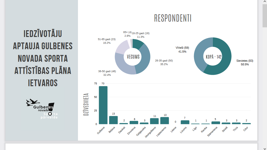 “Gulbenes novada Sporta attīstības plāna 2022.-2027.gadam” izstrādes procesā ir noslēgusies iedzīvotāju aptauja un apkopoti respondentu rezultāti. Par to informē gulbenes novada pašvaldība.