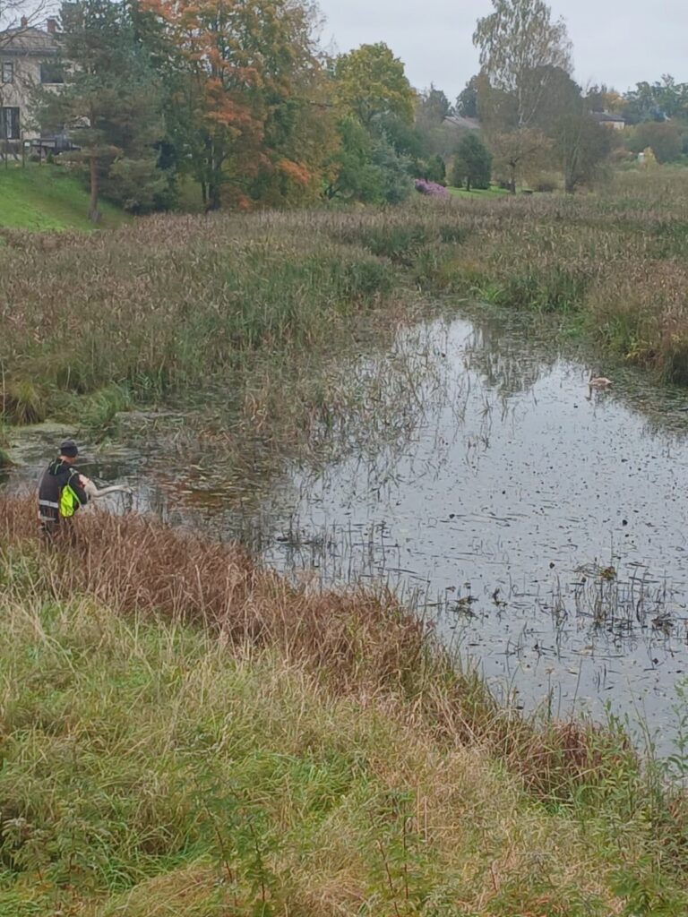 Gulbis no pilsētas centra pārvests atpakaļ dabiskajā vidē – grāvī, kas savienots ar Dzirnavu dīķi Gulbenē. Foto: no personiskā arhīva