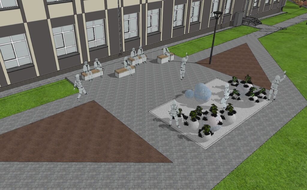 Publiskotā informācija liecina, ka plānota ir strūklaka ar 26 kvadrātmetru laukumu, dekoratīvi puķupodi, četri soliņi, āra atkritumu tvertnes. Zaļajai klasei plānoti arī apstādījumi par 8000 eiro bez PVN. Tie būs mūžzaļie augi – kalnu priedes, egles, kā arī mandeles, hortenzijas, ceriņi, fizokarpi, bārbeles. Tiks izmantotas arī vasaras puķes.