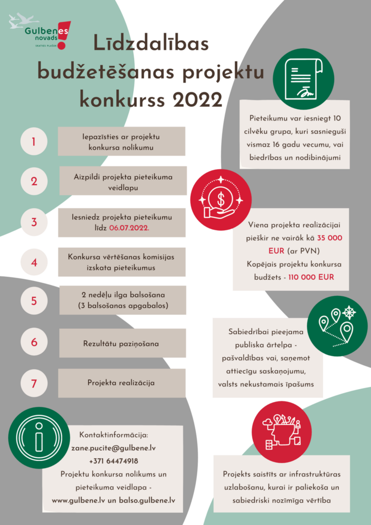 Projekta pieteikumu var iesniegt līdz 6.jūlijam 10 cilvēku, kuri sasnieguši 16 gadu vecumu, grupa vai biedrības un nodibinājumi. Šogad viena projekta realizācijai tiks piešķirts līdz 35 000 eiro, kopējais projektu konkursa budžets – 110 000 eiro.