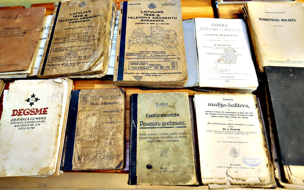 BIBLIOTĒKĀ izstādē aplūkojamās vecās grāmatas, kuras lielākā daļa ir no pagasta iedzīvotāju privātajām kolekcijām. FOTO: GATIS BOGDANOVS