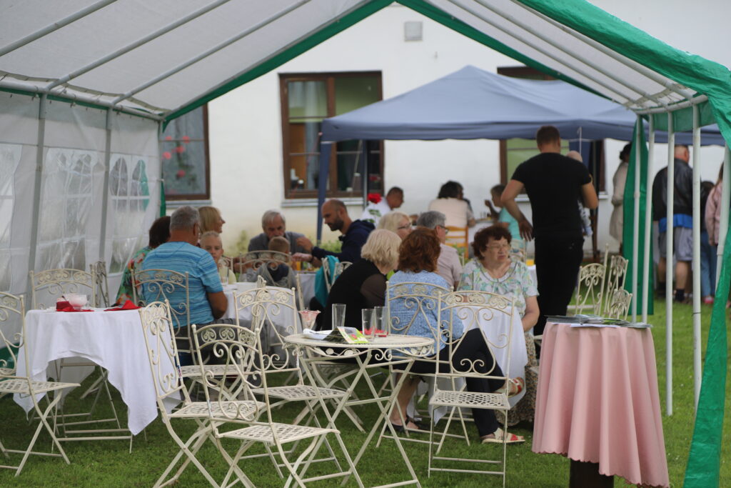 “Es nojautu, ka cilvēku varētu būt daudz, taču tādai plūsmai mēs īsti gatavi nebijām. Šī bija pirmā reize, kad uzdrošinājāmies ko tādu, izdevās, bet viegli nebija. Pati gatavoju pamatēdienus, ārā pie zupas vārīšanas talkā nāca meita Anete, galdiņus apkalpoja kaimiņu meitene Dagnija, bet pasūtījumus pieņēma kultūras nama vadītāja Maija Leimane, lai gan arī tad cilvēkiem nācās pagaidīt, lai tiktu pie maltītes. Te jāpateicas muižas baronam (Andris Kaņēvics) un baronesei (Diāna Skopāne), kuri, īsinot laiku apmeklētājiem, vadāja viņus ekskursijās pa muižas apkārtni. Tas, protams, bija ļoti pozitīvi, un man prieks, ka bija tik daudz apmeklētāju, bet nezinu, vai katrs palika apmierināts. Centāmies jau, tā taču ir mājas kafejnīca, nevis profesionāls restorāns. Tagad mēs sapratām, kā tas notiek, un apzināmies, kas vēl būtu jāpilnveido. Vai to uzņemties atkal? Vēl ir jāpadomā. Mūsu kafejnīca darbojās līdz pulksten 16.00, bet arī pēc noteiktā laika vēl nāca cilvēki. Pa visu dienu, neskaitot zupas un saldos, mēs izlietojām 30 kilogramus cūku ribiņu un kādus 12 kilogramus vistas filejas – tas ir daudz, ja ņem vērā to, ka viss tas vēl ir jāpagatavo,” stāsta Laura.