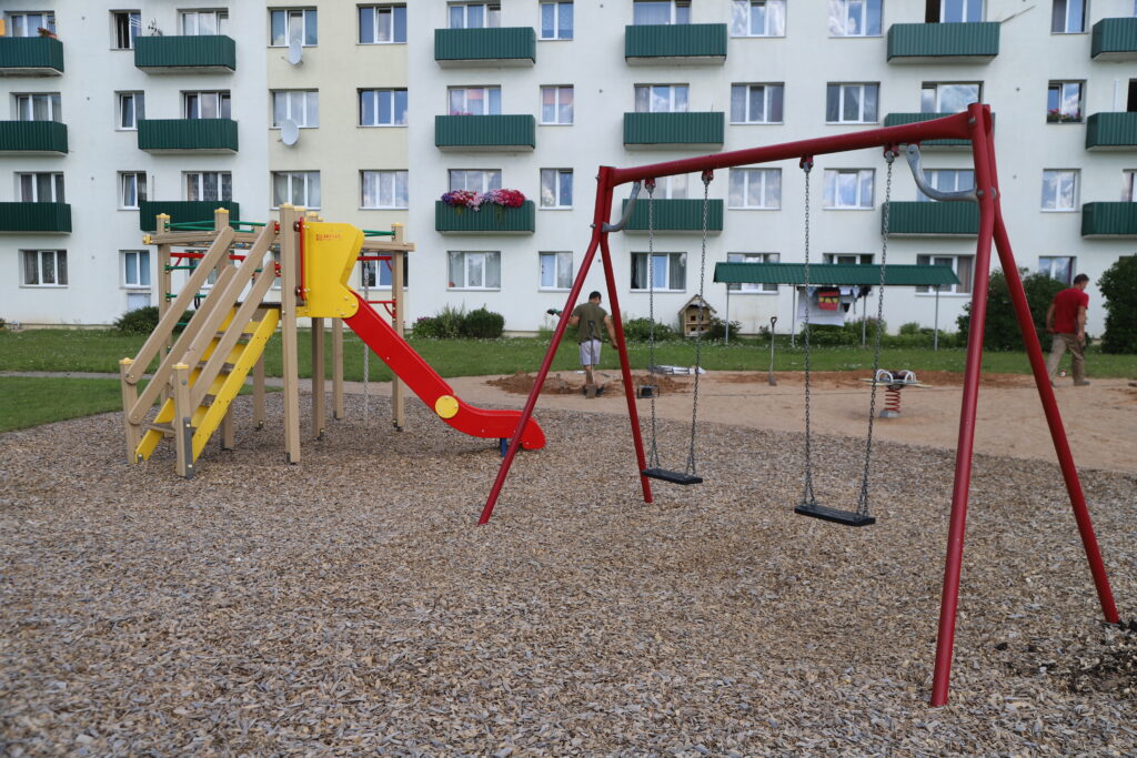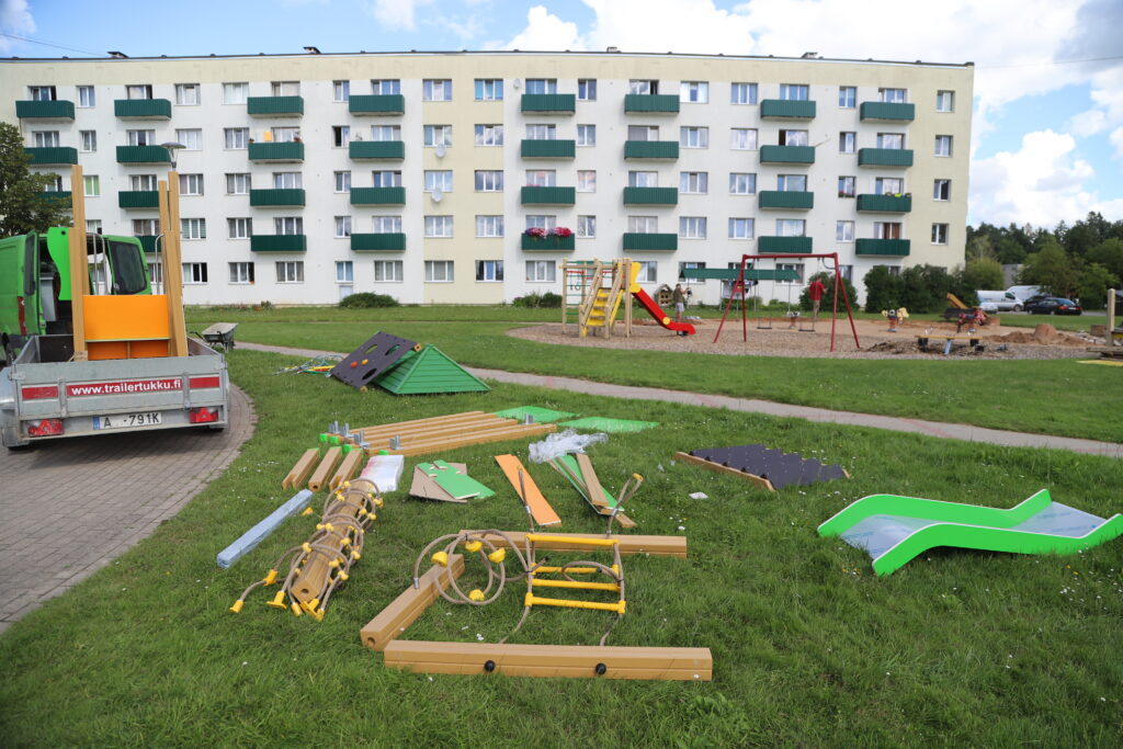 Gulbenē Nākotnes ielas rotaļlaukumā pagājušajā nedēļā uzsāka novecojošo un savu laiku nokalpojušo iekārtu demontāžas darbus un notika jaunu rotaļu iekārtu uzstādīšana.
