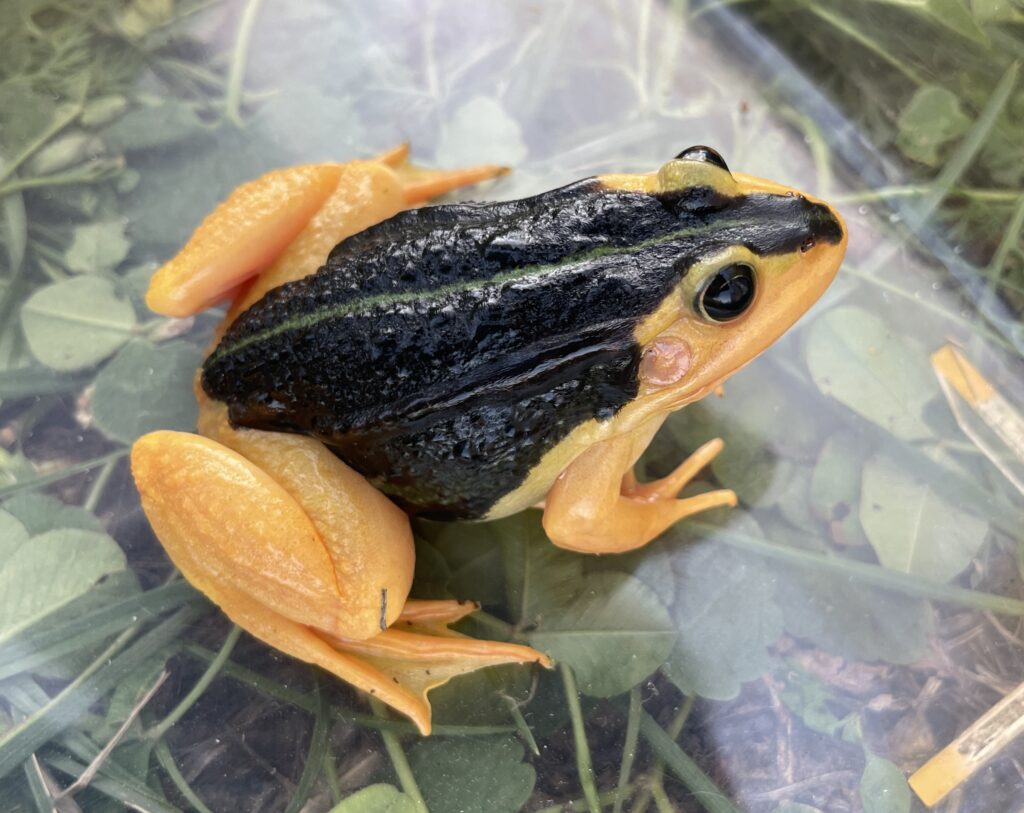 Neparastās krāsas varde no Gulbenes tagad mitinās Rīgas zoodārzā