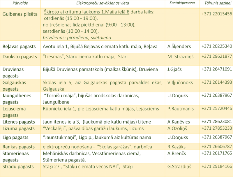 Akcijas norises vietas, kur nogādāt nederīgās elektropreces (neizjauktā veidā).