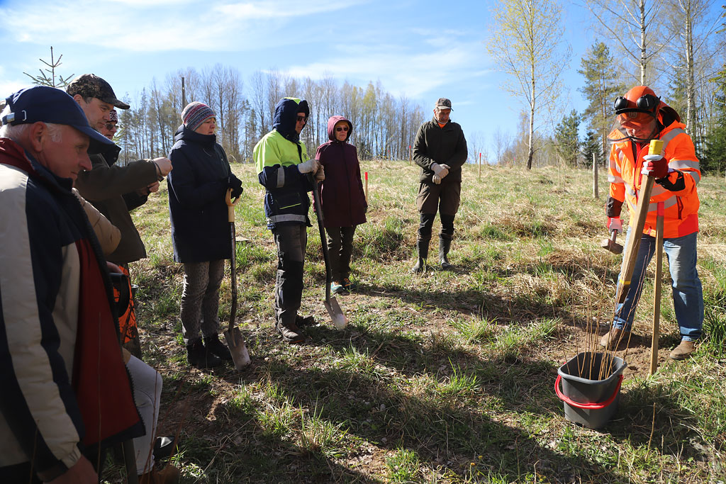 “Nu šī vieta, pēc manas dzīvesbiedres, kura šobrīd pārtop par mežsaimnieci, teiktā, atgādina Ozolkalna ainavu parku, un kalnu nogāzēs prasās pēc bērzu birzs. Šoreiz šā semināra sākumā visiem būs jāiestāda 100 bērzi. Tiks nodemonstrēti vairāki stādīšanas paņēmieni un skaidrots, kurš kurai zemei atbilstošāks un labāks. Šī birzs tiks iereģistrēta iniciatīvā “Par trīs miljardiem vairāk koku līdz 2030. gadam”. Iespējams, ka pēc gadiem septiņdesmit mani mazbērni tos arī nogriezīs, bet visu to laiku šie koki ražos skābekli un veidos šīs teritorijas kopējo ainavu,” sacīja G.Grīnšteins.
