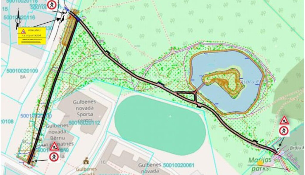 Pašvaldība informē, ka darbu veicēja SIA “LV Roads”, sekojot līdzi laikapstākļu prognozei, 13.janvārī uzsāka celiņu uzmērīšanu, asu nospraušanu, kā arī asfaltbetona seguma, betona kāpņu un betona pandusa demontāžu, elektrības tranšeju rakšanu un citus darbus, tādēļ būvdarbu zonā tiek izvietotas brīdinošas ceļa zīmes. Periodos, kad būvdarbi nenotiek, pārvietošanās būs atļauta.