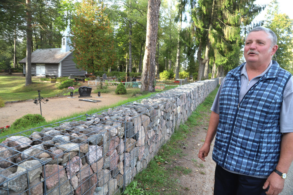 Pēteris Circens stāsta, ka ar akmeņiem sētas izbūvei palīdzēja gan savi, gan Litenes zemnieki, savukārt pērn restaurēta arī kapliča. Foto: Gatis Bogdanovs