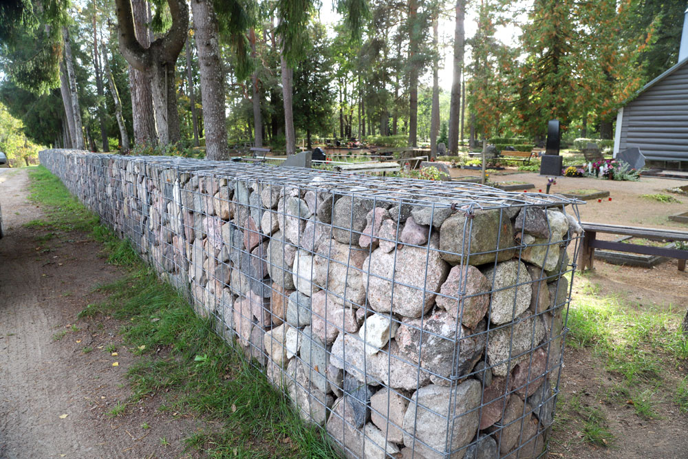 Stāmerienas kapos ir pabeigta 300 metrus garās gabiona sētas pēdējā 14 metrus garā posma izbūve.