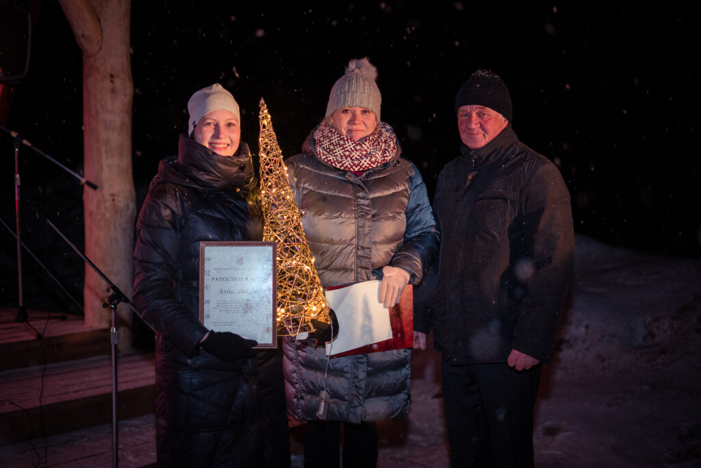 Jaungulbenes kultūras nama vadītāja Sarmīte Zdanovska (centrā) un izteica īpašu pateicību projekta idejas autorei Anitai Deksnei un pagasta pārvaldes vadītājam Aleksandram Vasiļjevam. Foto: Aleksandrs Lustiks