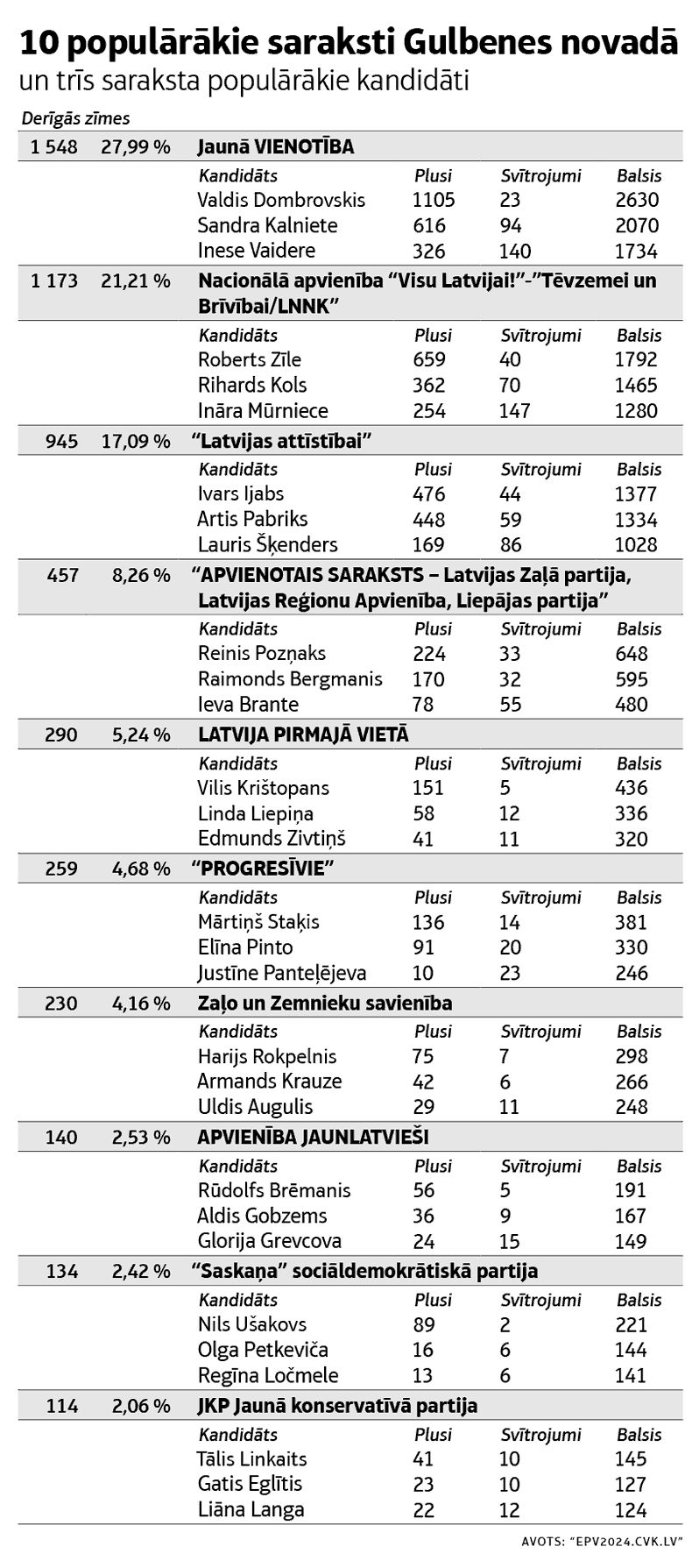 Bez rezultāta Eiropas Parlamenta šīs vēlēšanas ir pagājušas “JKP Jaunajai konservatīvajai partijai”. Šīs partijas pārstāve Gulbenes novada domē un priekšsēdētāja vietniece Guna Švika “Dzirkstelei” teica: “Prognozējām, ka būs tieši tā. Cerējām, ka rezultāts būs mazliet labāks. Paldies gulbeniešiem, jo šeit mūsu partijai Eiropas Parlamenta vēlēšanās ir labāks rezultāts (2,06 procenti vēlētāju balsu – red.) nekā vidēji Latvijā (1,5 procenti – red.). Jāteic, ka mūsu partijai priekšvēlēšanu kampaņa bija ļoti minimāla. Tam nebija naudas.”