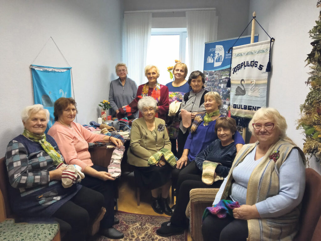 Tā kā ir klāt ziema un ukraiņu karavīriem nepieciešams siltāks apģērbs, mēs arī nolēmām organizēt vilnas zeķu adīšanas maratonu. Un šeit lielu atbalstu sniedza Gulbenes novada pensionāru biedrība Annas Vīgantes vadībā. Mēs sagādājām dziju, un čaklās adītājas adīja krāsainas un siltas zeķes, kam katrā valdziņā ieadīta arī mīlestība un laba vēlējumi. Vēlos nosaukt katru adītāju vārdā: Valda Deguna, Vija Gureviča, Dita Berkolde, Elvīra Balode, Dzirkstīte Baltiņa, Valda Šteine, Ērika Dukure, Tamāra Matisāne, Līksma Melngaile, Ineta Maksimova, Daiga Apsīte, Ināra Botska, Ilze Briede, Maija Simone, Dzintra Popa un Druvienas kultūras nama somu draugi. Vēl liels paldies sociālās aprūpes centra “Jaungulbenes Alejas” kolektīvam un tur mītošajiem klientiem Marikas Andževas vadībā, kuri iesaistījās adīšanā un saadīja skaistas, siltas zeķes, kas noteikti palīdzēs gūt ukraiņiem uzvaru.