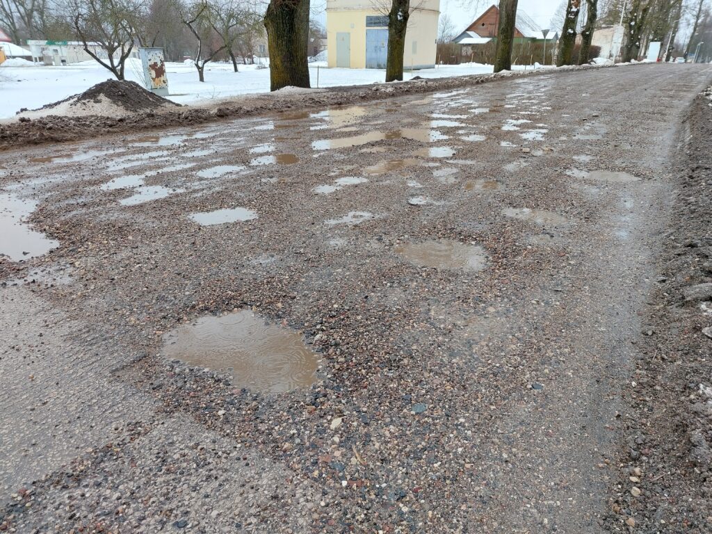 N.Mazūrs nedomā, ka pareizi būtu slēgt šo posmu uz laiku. “Kur tad palaidīs autobusu reisus? Lielās mašīnas? Es neredzu iespēju. Ir jāpacieš šie dubļi. Greiderēšana var palīdzēt uz brīdi, bet, ja atkal atkusnis, tad atkal būs bedres,” viņš prāto.