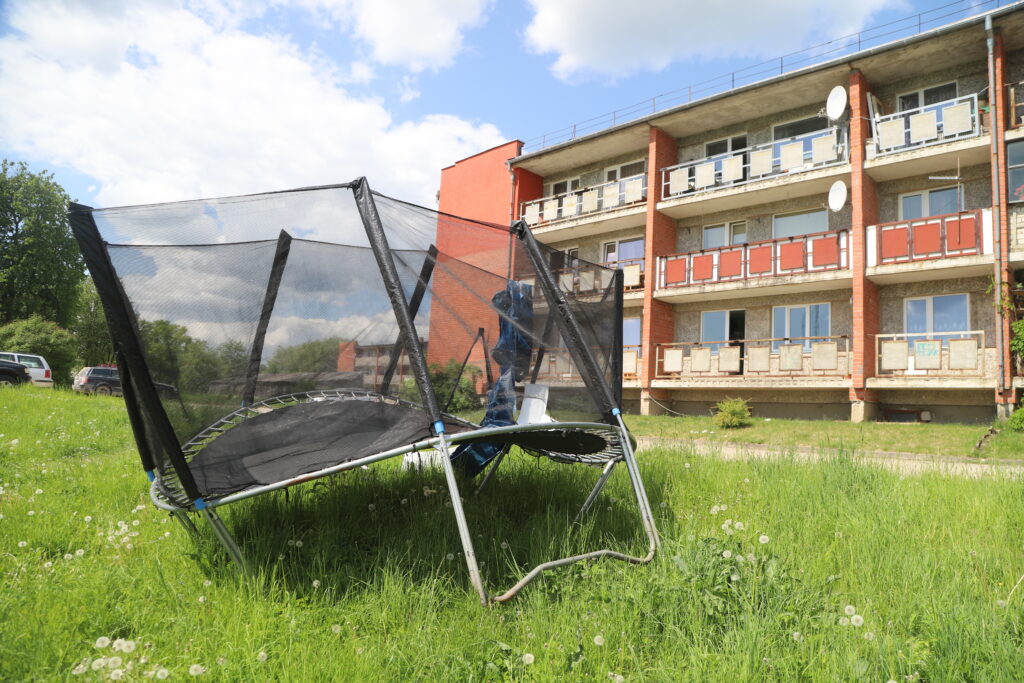 Sieviete stāsta, ka šīs mājas kādas ģimenes tēvs sakrājis naudu un visiem mājas bērniem sagādājis batutu. “Divas nedēļas visi bija priecīgi, nāca bērni arī no citām mājām, un neviens neiebilda, bet otrdien, atnākot no darba, secinājām, ka batuts ir sabojāts un saplēsts. No visas mājas tikai viena ģimene iebilda pret šo batutu, jo nevarot gulēt, bērni trokšņo. Bet bērni ārā ir līdz pulksten 21.00, vēlāk nav. Mājas vecākā arī vāca parakstus, vai ir vēl kāds, kas iebilst pret uzlikto batutu. Pārējie neiebilda. Un pēc parakstu vākšanas otrā dienā jau batuts ir saplēsts un nomests malā. Mums, mājas iedzīvotājiem, ir liels rūgtums par šādu rīcību. Izsaucām policiju. Teica, ka, tā kā nav aculiecinieku, diezin vai izdosies atrast vainīgo. Aculiecinieki varbūt arī ir, bet droši vien baidās runāt, lai nevēršas pret viņiem,” stāsta sieviete.