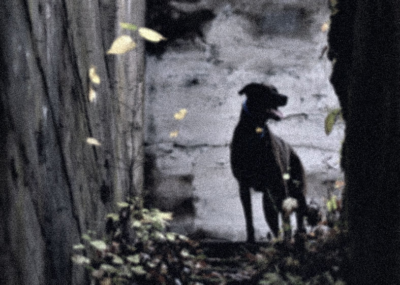Viņš ļauj pat sevi noglāstīt, arī ēd no rokas, bet saņemt tādu lielu “vilku” pavadā ir bail. Piesiets viņš nav. Brīvi pārvietojas. Mēdz uzturēties šķūnī. Izskatās, ka varētu būt pat šķirnes suns. Smuks suns. Labās miesās. Bet suns ir stresā. Vai no ugunsgrēka vai cita iemesla dēļ. Nav jau zināms, kā pret viņu ir izturējies saimnieks.
